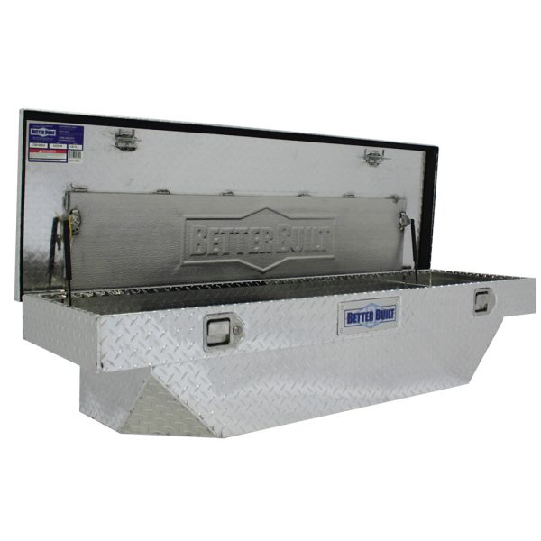 BETTER BUILT® Saddle Truck Tool Boxes offer great protection for tools and equipment while keeping the truck bed floor clear. The saddle truck tool box comes with easy-to-use paddle handles with locking capabilities on the driver side, the most common area to lock/unlock a truck box. The low profile design helps maximize visibility from the cab and the narrow, wedge cut tub design allows for more room in the bed of your truck while clearing the wheel wells. The full seal weather stripping helps prevent elements from getting into the truck box and the self-adjusting strikers are guided to their latch every time to provide a secure closure. The self-rising gas spring allows easy single handed entry to the box. This box is backed by a 1 year limited warranty.