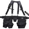 Our best quality, 4-piece, pro framer’s combo tool belt in premium, top grain leather with a double-tongue roller buckle belt, our easy-carry pouches, and 15 pockets and sleeves for your favorite nails and tools.