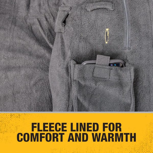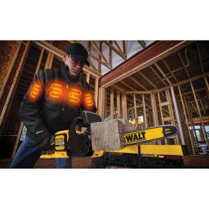 The DEWALT® DCHJ060ABD1 heated jacket can provides hours of core body warmth and continuous heat. This jacket features 5 core heating zones and 3 temperatures. The outer shell is wind and water resistant while the lining is a soft and comfortable fleece. This is fully outfitted with a DEWALT® 20V battery, fast charger and DCB092 adapter. The USB power adapter can be used to charge your portable accessories.