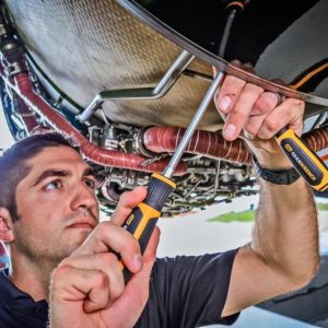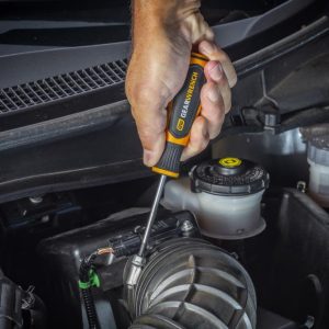 GEARWRENCH screwdrivers are ergonomically designed to fit your hand while on the job. The tri-lobe handle shape provides the best performance with the least amount of effort. The dual material of the handle is oil and solvent resistant. The tips have a black oxide, non-slip coating. The part numbers and sizes are laser etched on the blade.