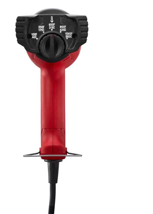 The Milwaukee® Variable Temperature Heat Gun offers heating options for various projects around the job site. This device excels with everything from paint removal to pipe bending. As an electric heat gun, it plugs into 120V AC for power and features an 11.6-amp motor for power. This two-position switch allows the user to choose from the 100-degree F setting and the more intense 1,040-degree F setting. After you select the initial temperature setting, you may adjust the dial to control with even greater specificity. This variable temperature heat gun relies on an impact resistant heating element to function and remains a durable choice for both home and professional use. This tool includes heat shields to protect the hands and allows the user direct control over the directed heat without experiencing blowback. Consider this model as a general solution for a variety of tasks that require heat.