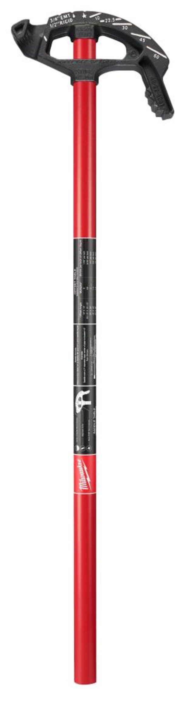 Milwaukee® conduit benders feature high contrast markings for the best visibility allowing users to easily and accurately make bends. A reinforced hook and pedal provide added durability while a secure double bolted handle won’t loosen. These conduit benders feature the most bending references and a wear-resistant reference chart for easier use. Milwaukee conduit benders are available in 1/2 in. EMT, 3/4 in. EMT, and 1 in. EMT heavy duty iron models and 1/2 in. EMT and 3/4 in. EMT lightweight aluminum models.