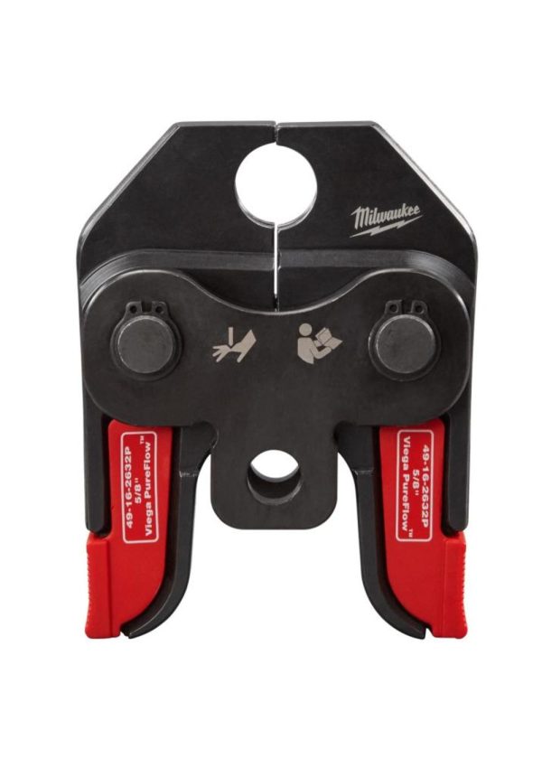 The Viega PureFlowâ„¢ jaws for the Milwaukee M18â„¢ short throw press tool are an essential part of the fastest, effortless installs from branch to fixture. With an easy open, in line design, the jaws are optimized for one handed pressing. Jaws are color coded by size to match the Viega PureFlowâ„¢ fittings, allowing for easy identification and selection. For use with the M18â„¢ short throw press tool.
