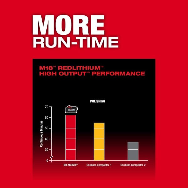The MILWAUKEE® M18™ FUEL™ 15mm Random Orbital Polisher is the most powerful cordless RO polisher on the market. By harnessing the power, performance, and run-time of M18™ FUEL™ technology, this tool delivers corded performance while providing the freedom to work anywhere. This battery-powered polisher delivers total control with its variable speed trigger, 8-position speed dial with RPM settings ranging from 2,650-5,100 RPM, trigger lock-on button, and maintains speed under load better than any cordless competitor. The M18™ FUEL™ 15mm Random Orbital Polisher eliminates the fear and frustration from surface damage or cord management. With over 2” of battery clearance and proper use, work surfaces are protected from dents and scratches. The M18™ FUEL™ 15mm Random Orbital Polisher provides the run-time necessary to keep professionals productive during polishing and heavy correction applications when paired with M18™ REDLITHIUM™ HIGH OUTPUT™ XC 6.0Ah batteries. This polishing tool is easy to use and comfortable for extended periods with an optimized center of balance and ergonomic design.