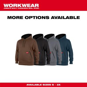 The MILWAUKEE® Midweight Pullover Hoodie is EASY TO LAYER and MORE BREATHABLE. This midweight hoodie offers seasonal versatility while delivering on a trade focused design with drop shoulder seams and reinforced pocket seams. The comfortable fit and design allows you to move freely and easily on the job. Choose from Black, Brown, Gray, or Blue colors, available in sizes small to 3XL.