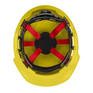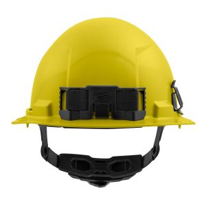 The MILWAUKEE® Yellow Front Brim Hard Hats with 6-Point Suspension – Type 1, Class E is designed to adapt to your jobsite. The hard hat has a BOLTâ„¢ Headlamp Mount that works with most headlamps for easy, secure attachment. Four BOLTâ„¢ accessory slots and two universal accessory slots easily integrate additional personal protection equipment and accessories onto the hard hat. The hard hat includes an adjustable swinging ratchet for better comfort and has a 6-point ratcheting suspension for quick adjustment. The hard hat also includes a BOLTâ„¢ Marker Clip that allows for easy access to pens and markers. The head protection also includes a moisture-wicking sweatband to stay cool and dry fast. These construction hard hats are ANSI/CSA approved and can be customized by adding a logo.