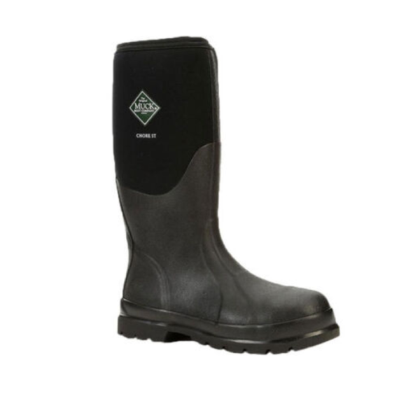 The dependability of a Muck Bootâ„¢ is now in a steel toe work boot. The Chore can take on the worst of the worst. The upper has a stretch-fit binding keeping warm in and cool out as well as a seamless, quick-clean rubber overlay. A steel shank provides additional support, with triple reinforcement in the toe area and quadruple reinforcement in the heel. A durable, lightweight rubber outsole adds unbeatable traction in all conditions.