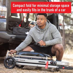 Weber traveler portable propane gas grill takes up minimal space in your garage and designed to fit easily in the trunk of a car