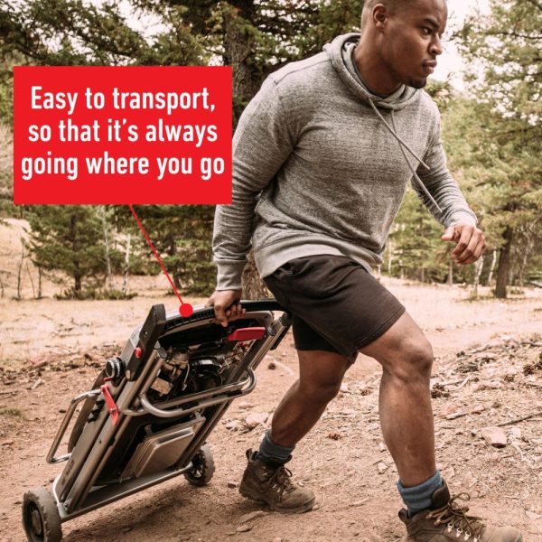 All-terrain attached cart is specially designed for an easy, 1-handed setup and fold down so you’re up and grilling in no time
