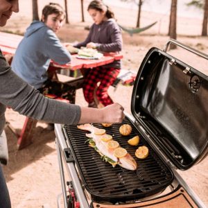 The Weber Traveler portable propane grill is for anyone who wants delicious grilled food away from home. Whether you’re camping, tailgating or picnicking, the Weber Traveler portable grill has a sturdy and compact design that makes for a seamless experience from setup to storage. Savor the journey with backyard quality food, no matter where the adventure takes you with the Weber Traveler portable grill.