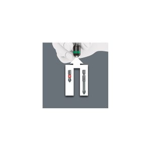 High quality bit holder. Includes a ratchet – fine-toothing with a small return angle, switchover (right, fixed, left), maximum torque of up to 50 Newton meters. The rapidaptor quick-release chuck enables rapid bit change without needing any special tools. The strong permanent magnet holds the bits absolutely securely. Kraftform plus handle for pleasant, ergonomic working that makes blisters and calluses a thing of the past. Hard gripping zones for high working speeds whereas soft zones ensure high torque transfer. Suitable for bits with 0.25 In. hexagon head drive as per DIN ISO 1173-C 6.3 and E 6.3 (ISO 1173).